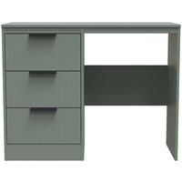 This practical 3 drawer narrow desk/vanity is perfect for any bedroom or office. A matching stool and mirror (in 2 sizes) are also available. The contemporary Nashville range with its vertical linear pattern is perfect to showcase any space in your home. From Bedroom to living room Nashville blends into any setting with a wide range of stylish colours and finishes, we show what is needed to build your modern paradise. Features: Distictive Linear Design Black Metal Pull Handles Does not have legs Smooth ...