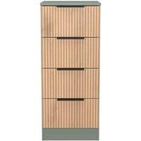 This 4 drawer tall bedside cabinet is practical and stylish. Perfect for any bedside or as a free standing storage unit. Combining both simple elegance with modern styling, this new range comes with a striking slatted effect front, sturdy black metal handles and smooth metal drawer runners. Perfect for any modern home. All our furniture is made in the United Kingdom, to the highest quality. It is delivered direct to your location of choice by one of our two man delivery teams, and come full assembled (a...