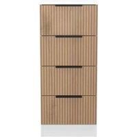 This 4 drawer tall bedside cabinet is practical and stylish. Perfect for any bedside or as a free standing storage unit. Combining both simple elegance with modern styling, this new range comes with a striking slatted effect front, sturdy black metal handles and smooth metal drawer runners. Perfect for any modern home. All our furniture is made in the United Kingdom, to the highest quality. It is delivered direct to your location of choice by one of our two man delivery teams, and come full assembled (a...
