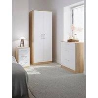 SWIFT Chester Ready Assembled Bedroom Furniture Package - 2 Door Wardrobe, 3 Drawer Chest and 3 Bedside Table This ready assembled 3 piece furniture pack contains a 2 door wardrobe, 3 drawer chest and 3 drawer bedside chest. With its sleek metal handles and wood effect finish this stunning design gives both a traditional and contemporary feel to any room. All our furniture is made in the United Kingdom, to the highest quality. It is delivered direct to your location of choice by one of our two man deliv...