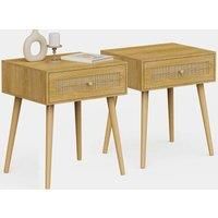 BOHO CHIC: Finished with an authentic rattan fronted storage drawer, the VonHaus Sienna bedside table is infused with rustic retro charm. Add that natural feel to your home today. LUXE FINISHING TOUCHES: The delicate brushed gold handle adds an opulent touch, whilst the smooth metal runners protect your goods. Both stylish and secure, this night stand is the ultimate bedroom addition. SOLID WOOD LEGS: Finished with a wood effect melamine coating, your rattan bedside table is set atop tapered rubber wood... - Manufacturers part number: 4000652