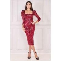 Prepare to steal the spotlight in our Square Neck Scalloped Lace Midi Dress, the ultimate choice for parties and special occasions. This charming wine dress features a timeless square neckline, elegant long sleeves, and an exquisite all-over embroidered sequin design on lace, making it the ideal option for parties, mother of the bride, wedding guests, and semi-formal events. With its captivating sequin detailing, this wine occasion dress radiates glamour and style. The square neckline adds a touch of vintage elegance, while the scalloped lace design provides a classic and sophisticated look. Our Square Neck Scalloped Lace Midi Dress is the perfect pick for making a memorable entrance at any special event. Whether you're a wedding guest or attending a semi-formal affair, this wine dress ensures you exude confidence and grace. Choose this exceptional dress to make every occasion extraordinary.​ - Manufacturers part number: Goddiva_