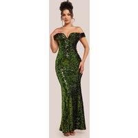 ​Slip into pure elegance with the Goddiva Sequin Velvet Bardot Evening Maxi Dress in Olive Green. This striking off-the-shoulder design embraces the season’s love for sultry silhouettes and opulent textures. Featuring a statement metal U-trim neckline, this bodycon fit accentuates your curves while the fishtail hem creates a dramatic, show-stopping finish. The rich olive green hue is both daring and sophisticated, blending perfectly with the shimmering sequin and lush velvet fabric—a combination that screams red-carpet glamour. Perfect for those who adore statement evening wear, this dress effortlessly combines timeless appeal with trending luxe aesthetics. Whether it’s a gala, winter ball, or an unforgettable date night, this is the ultimate outfit to own the spotlight.​ - Manufacturers part number: Goddiva_