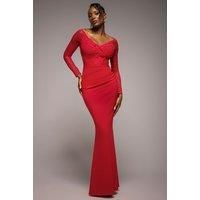 Get this Goddiva Women's Scalloped Lace Bodice Long Sleeve Bardot Maxi Dress in Red | Size: 10 from Debenhams for only £115.00. We found this offer 8 days ago, so hurry whilst stocks last!