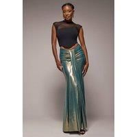 Goddiva Women's Gathered Front Dipped Waist Foil Maxi Skirt in Gold | Size: Large