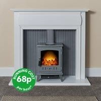 This stunning grey and white fireplace surround and stove is perfect for adding a stylish and modern touch to any room. With a grooved back panel and a metal grey stove this set is contemporary and durable. This stove contains a realistic LED flame effect on a moulded log fuel bed. This stove contains a handy safety cut-out system and a 1.5 metre cable for ease of use. The surround fits flat to the wall and the stove sits inside. - Manufacturers part number: 30718780