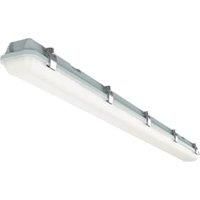 Polycarbonate body. LED performance allows point-to-point replacement of existing fluorescent luminaires. Light fixing clip design provides option of mounting onto a BESA box. Output exceeds performance of T8 and T5 fluorescents. Lockable heavy-duty stainless steel clips supplied. IP65: For Indoor Use Cool White 3230lm Polycarbonate Body Polycarbonate Diffuser Up to 30,000 Hours Life 1 Year Guarantee