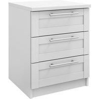 * Silver effect handles* Matt finish* Ample storage space* Shaker Framed Fronts This Sudbury Framed 3 Drawer Bedside Table features an 18mm top and heavy-duty metal drawer slides for durability. With shaker frame fronts, this bedside table combines modern design with practical storage in a sleek and stylish manner. Please note: we cannot deliver this product to Northern Ireland - Manufacturers part number: 30888991