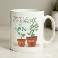 * Please see below on how to personalise your Mug:* Two names of 15 characters each.* Name 1 will appear on the large plant.* Name 2 will feature on the small plant.* Personalisation will appear in fixed uppercase.* " Thank You For Helping Me Grow" is fixed text and cannot be changed.* Handwashing is recommended.* Made from ceramic. The Helping Me Grow Mug is a heartwarming gift that expresses gratitude. Personalise it with two names, and let the recipients know they've played a part in your growth. ... - Manufacturers part number: 30878574