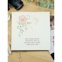 The Personalised Memento Company Personalised Floral Square Photo Album This Floral Square 6x4 photo album is a cute gift idea for Weddings, Anniversaries, Birthdays, new babies or expecting mothers! Personalise this photo album with a message using 70 characters. Contains 30 sleeved pages, holding up to 120 6x4 photos with a space for text beside each one. Ideal for Birthdays, Anniversary, Weddings, new borns and baby showers Depth: 3 CM Height: 22.5 CM Width: 22.5 CM