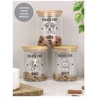 Keep your pup's treats fresh and stylishly stored with this Personalised Dog Breed Treat Jar! Featuring an adorable illustration of your chosen breed, this beautifully designed jar is the perfect way to keep those tasty rewards within your reach, but thankfully not theirs! Made from glass with a sleek wooden lid, this jar adds a charming touch to any kitchen or pet corner. Personalise it with a name of up to 15 characters, which will appear below the fixed text "Treats For," creating a unique and spe...