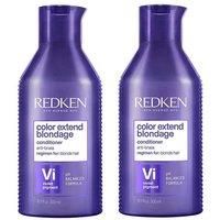 Stock up and save with this double pack of Redken Color Extend Blondage Conditioner 300ml Banish brassiness and leave blonde hair vibrant and strengthened with this Color Extend Blondage Conditioner from Redken. Infused with ulta violet pigment and Triple Acid Protein Complex, this intelligent formula works to strengthen, tone and brighten for a brighter and stronger blonde. Fortifying the hair cuticle to avoid breakage whilst minimising yellow undertones, hair will be left gorgeously glossy, refreshed and vibrant. | Redken Color Extend Blondage Conditioner 300ml Double in Clear - Manufacturers part number: Redken_5056182309955