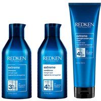 Restore and fortify damaged hair with this powerhouse duo of Extreme best-sellers from Redken. Contents Redken Extreme Strength Shampoo 300ml Redken Extreme Strength Conditioner 300ml Redken Extreme Strength Strength Builder Plus Mask 250ml The powerhouse Extreme Shampoo cleanses hair and strengthens weakened areas. Additionally, it works to repair damage and protect hair's natural shine. The advanced Extreme Conditioner treats the root, core and tip of hair, detangling, smoothing and fortifying your l... - Manufacturers part number: Redken_5056182310173