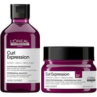 This bargain duo contains L'Oreal Professionnel Curl Expression Moisturising & Hydrating Shampoo 300ml & Curl Expression Hair Rich Mask 250ml. L'Oreal Professionnel Curl Expression Moisturising & Hydrating Shampoo 300ml Cleanse your curls, L'Oreal Professionnel Expression Moisturising & Hydrating Shampoo gently cleanses curls while providing weightless, long-lasting hydration, for healthy looking replenished and easy to detangle curls and coils. This is the go to shampoo if you have fine open curls. The high-performance moisturising shampoo instantly hydrates the hair, an ultra creamy formula transforms into a rich and enveloping foam when in contact with water, saturating curls with moisture to help detangle. Co developed with curl experts and enriched with highly concentrated actives Glycerin to maintain moisture levels, Urea H with gentle exfoliating properties and Hibiscus Seed Extract to nourish hair. An addictive fragrance of a floral composition of star Jasmine, Orchid & Freesia... - Manufacturers part number: L'Oreal Professionnel_5056182312870