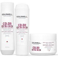 The Goldwell Dual Senses Color Brilliance Extra Rich Shampoo 250ml, Conditioner, 60 Second Treatment 200ml Pack is for thick to coarse hair. New color luminosity for colored and non-colored hair, it minimises your colour from fading. Key benefits: Minimizes color fading. Instantly brings out color luminosity. Keeps salon color vibrant. As gentle as water, the unique FadeStopFormula minimizes color fading with every use. The 60 Second Treatment will instantly restore severely damaged hair structures from deep inside your hair. The new luminescine color technology transforms non-visible UV light into visible light for magnificient brilliance. | Goldwell Dual Senses Color Brilliance Extra Rich Shampoo 250ml, Conditioner, 60 Second Treatment 200ml Pack in Clear - Manufacturers part number: Goldwell_5056182314416
