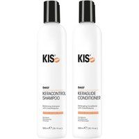 This duo pack includes a moisturizing shampoo and anti-static conditioner with botanical extracts and keratin to repair and enhance manageability for curly and treated hair. | KIS Keracontrol Shampoo & Keraglide Conditioner in White - Manufacturers part number: Kis_5056182317455