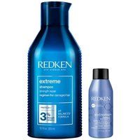 One of Redken's best-selling products, Redken Extreme Shampoo is now available in this 300ml and Mini duo to keep hair repaired and strengthened at home or away! This strengthening shampoo for damaged hair cleanses, repairs strength, and adds flexibility, as well as fortifies weakened areas and restores/repairs damage while protecting the natural shine of hair. | Redken Extreme Shampoo 300ml & Mini Extreme Shampoo 50ml Duo in Clear - Manufacturers part number: Redken_5056182320073