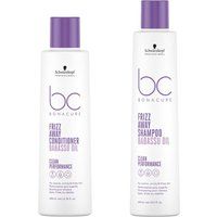 Schwarzkopf DOUBLE BC Clean Frizz Away Shampoo 250ml Schwarzkopf DOUBLE BC Clean Frizz Away Conditioner 200ml Shampoo: A taming shampoo from Bonacure Frizz Away, specially formulated to gently cleanse unruly, coarse, and frizzy hair. The formula smooths the surface of the hair. Key features: Gently cleanses unruly and frizzy hair Improves manageability Adds intense shine Vegan formula* *free from animal-derived ingredients. Free from SLS/SLES sulphates**, silicones and artificial colourants **free from Sodium Lauryl Sulphate and Sodium Laureth Sulphate. INGREDIENTS: Aqua (Water, Eau),Cocamidopropyl Betaine, Sodium Methyl Cocoyl Taurate, Coco-Glucoside, Sodium Chloride, Sodium Methyl 2-Sulfolaurate, PEG-120 Methyl Glucose Dioleate, Cannabis Sativa Seed Oil, Cannabis Sativa Seed Extract, Hydrolyzed Rice Protein, PEG-7 Glyceryl Cocoate, Caprylyl/Capryl Glucoside, Citric Acid, Parfum (Fragrance),Sodium Benzoate, PEG-40 Hydrogenated Castor Oil, Disodium 2-Sulfolaurate, Guar Hydroxypropyltri... - Manufacturers part number: Schwarzkopf_5056182333073