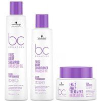 Tame your unruly, coarse, and frizzy hair with this specially formulated pack from Schwarzkopf. Contains: Schwarzkopf PACK Clean Frizz Away Shampoo 250ml, BC Clean Frizz Away Conditioner 200ml & BC Clean Frizz Away Treatment 200ml Shampoo: A taming shampoo from Bonacure Frizz Away, specially formulated to gently cleanse unruly, coarse, and frizzy hair. The formula smooths the surface of the hair. Key features: Gently cleanses unruly and frizzy hair Improves manageability Adds intense shine Vegan formula* *free from animal-derived ingredients. Free from SLS/SLES sulphates**, silicones and artificial colourants **free from Sodium Lauryl Sulphate and Sodium Laureth Sulphate. Conditioner: A Frizz Away conditioner specially formulated to gently detangle and tame unruly, coarse, frizzy hair. The formula smooths the surface and instantly improves manageability. Fast-rinse formula: 50% less water is required for rinsing*** Key features: Gently detangles and tames unruly and frizzy hair Adds in... - Manufacturers part number: Schwarzkopf_5056182333080
