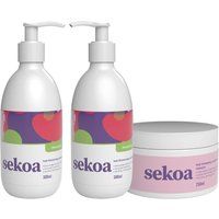 This hair care pack includes shampoo, conditioner, and masque with bamboo extract, pea sprout protein, and hyaluronic acid to strengthen, moisturize, and nourish for thicker, healthier hair. | Sekoa Hair Thickening Shampoo Conditioner Conditioning Masque in White - Manufacturers part number: Sekoa_5056182333165