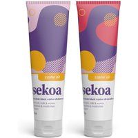 This shampoo and conditioner duo gently moisturizes and detangles curls, coils, and waves, reducing frizz and restoring softness and shine for daily scalp and hair care. | Sekoa Jamaican Black Castor Oil Shampoo Conditioner Duo in Purple - Manufacturers part number: Sekoa_5056182333172