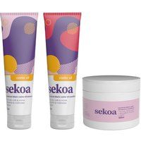 This hair care set includes shampoo, conditioner, and leave-in conditioner enriched with Jamaican Black Castor Oil to moisturize, detangle, and reduce frizz for defined, soft curls. Ideal for daily use. | Sekoa Shampoo Conditioner Leave-in Conditioner in Pink - Manufacturers part number: Sekoa_5056182333189