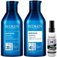 One of Redken's best-selling products for damaged hair, this hair strengthening shampoo and conditioner protects shine, repairs your hair and leaves it supple and shiny. A smart, targeted delivery system, Redken Extreme Conditioner treats hair from the root to the core to the tip, giving all 3 levels the custom nourishment that they need. | Redken Extreme & One United Bundle in Clear - Manufacturers part numbers: Redken_5056182333868|R00017