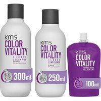 Transform your tresses to be salon-worthy and looking with this duo from KMS! KMS ColorVitality Shampoo (300ml) and Conditioner (250ml) & Intense Gloss Treatment (100ml). Shampoo: infused with improved formula's for easy styling and up to 3 times longer-lasting colour! Prevents Colour Fade and restore your hair's radiance for a beautiful, vibrant finish to your style. Formulated with the new TRIfinity Technology to help your hairstyle stay just the way you want it! Conditioner: Utilising the benefits of an AHA Structure Complex and an advanced UV filter, this lightweight, color-protecting conditioner boosts shine and vibrancy while hydrating and restoring radiance from root to tip. It protects against environmental damage, leaving hair sleek and glossy. Treatment: The Gloss Treatment boosts shine and color vibrancy whilst hydrating and conditioning the hair from the inside out. | KMS Color Vitality Shampoo 300ml, Conditioner 250ml & Intense Gloss Treatment 100ml in Clear - Manufacturers part number: KMS_5056182335329