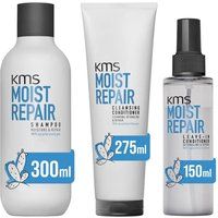 Achieve the ultimate haircare routine with this KMS pack! This includes: KMS Moist Repair Shampoo 300ml , Moist Repair Cleansing Conditioner 275ml & Moist Repair Leave-In Conditioner 150ml. Shampoo: Gently cleanse. Repair damage. Replenish moisture. This Moist Repair Shampoo by KMS replenishes moisture to your hair without weighing it down and deeply moisturises even the driest of hair! Key Benefits: - Reduce breakage & split ends by up to 99%. - Up to 3x easier detangling. - Strengthens & protects your hair from damage Cleansing Conditioner: This conditioner gently cleanses the hair whilst strengthening & protecting it from damage. Key Benefits: - Reduces breakage & split ends by up to 98% - Restores hair's natural protective power and replenishes moisture without weight - Improves elasticity by up to 98% - Deeply and weightlessly moisturises even very dry hair and improves manageability for up to 4x easier detangling! Leave-In Conditioner: Reconstruct damaged hair structures, strengt... - Manufacturers part number: KMS_5056182335374