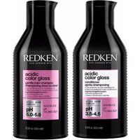 This shampoo and conditioner duo features an advanced pH formula and Acidic Shine Complex to protect color and seal cuticles, delivering up to 72 hours of hydrated, glossy hair. | Redken Acidic Color Gloss Shampoo Conditioner Duo in Clear - Manufacturers part number: Redken_5056182339488