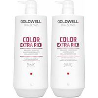 This shampoo and conditioner duo gently cleanses and detangles thick hair while minimizing color fading and enhancing color luminosity with advanced UV light technology. | Goldwell Dualsenses Extra Rich Brilliance Shampoo Conditioner Duo in White - Manufacturers part number: Goldwell_5056182344765