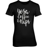 IWOOT - Stuff you really, really wantThe brilliant Yoga Coffee And Naps Women's T-Shirt, stylish and practical, is unique to our site. Designed by those with an eye for fashion, it features a bold graphic on a stylish background.(By sourcing our materials from responsible suppliers, ethical practices have been adhered to, so you can feel confident with your purchase.) Pure-cotton T-shirtWashing-machine approvedPlease refer to the label prior to tumble-dryingMedium-thickness clothingWith sizing in mind, our items are made to be loose-fitting, suitable for both men and women. For an even looser fit, please order the next size up. - Manufacturers part number: T-Junkie_64000L-S-1396123