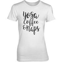 IWOOT - Stuff you really, really wantThis Yoga Coffee And Naps Women's T-Shirt, stylish and practical, is unique to our site. Designed by those with an eye for fashion, it features a bold graphic on a stylish background.(This product has been manufactured with ethical standards in place, so you can trust our site as the number-one place to purchase clothing.) Pure-cotton teeThis product can be used with washing machinesPrior to tumble-drying, please refer to the labelMedium thicknessComfort assured, our items provide a relaxed fit for both men and women. If you prefer baggier clothing, we recommend that you order a larger size. - Manufacturers part number: T-Junkie_64000L-S-1399203