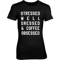 IWOOT - Stuff you really, really wantThis creative Stressed Well Dressed And Coffee Obsessed Women's T-Shirt, which is brimming with style, is only available on our site. Capturing the interest of onlookers, it stands out with a vivid print on a stylish item of clothing.(Having selected our suppliers carefully, we can confidently say that our products are ethically sourced, so start shopping with confidence.) High-quality cotton attireWashing-machine approvedTumble-drying instructions provided on the labelMedium-weight clothingFurther, we cater to men and women with equal regard, our items having loose-fitting proportions. Our recommendation is that you order a size up if you want a baggy fit. - Manufacturers part number: T-Junkie_64000L-L-1394992