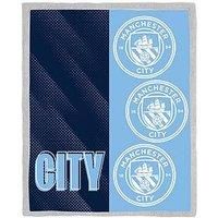 Manchester City Man City Tackle Sherpa Fleece Blanket Come on you Citizens! Perfect for any Manchester City fan young or old, this officially licensed Man City Football Club fleece blanket makes for a great gift. The sherpa-backed fleece blanket features a large print of 3 MCFC badges, with the ??City' logo on a split background of dark and light blue, with retro diffused spots on the dark half. This officially licensed Sherpa lined fleece blanket is fantastic for wrapping up warm during the cold winte...