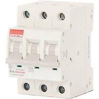 Designed to protect against overload and short circuit. For use in Defender consumer units and distribution boards. DIN rail mounted. 3-Phase, triple pole. DIN Rail Mounted Fitting 10kA Breaking Capacity Type B Curve - Manufacturers part number: CPB1016B3