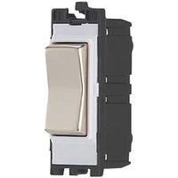 Contactum Decorative 10AX 2-Way Grid Retractive Switch Module 'Press' Off Centre Brushed Steel with White Inserts (410RV)