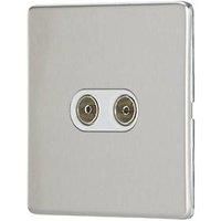 Low profile non-isolated coaxial socket with clip-on faceplate. Designed for standard TV/ Coaxial connections where two way signal is required. High-quality, non-magnetic metal construction with lacquered surface to reduce fingerprint marks. Flat Profile Screwless Faceplate Requires 35mm Back Box Captive Terminal Screws - Manufacturers part number: LYR3148BSW