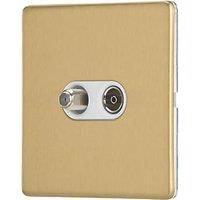 Contactum Lyric 2-Gang Coaxial TV & F-Type Satellite Socket Brushed Brass with White Inserts (619RR)