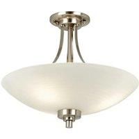 Semi Flush Ceiling Light Satin Chrome Glass 3 Bulb Feature Lamp Holder FittingTechnical Specification : The Welles flush light has a satin nickel finish complete with a white painted glass shade which has a faint line pattern. Other finishes and matching items are also available, all of which are suitable for use with LED lamps and are Dimmable. Dimmable. Complete with fixing accessories. White painted lined glass and satin chrome. Constructed from glass and steel. 3 x 60W E27 GLS (Required). Proj: 350m...