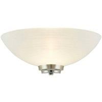 Dimmable LED Wall Light Satin Chrome White Line Pattern Glass Shade Dome LampTechnical Specification : The Welles wall light has a satin nickel finish complete with an white painted glass shade which has a faint line pattern. Other finishes and matching items are also available, all of which are suitable for use with LED lamps and are Dimmable. Dimmable. Complete with fixing accessories. White painted lined glass and satin chrome. Constructed from glass and steel. 60W E27 GLS (Required).Proj: 150mm H: 1...