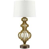 Technical Specification : Table Lamp-Open Design Scroll Effect Base-Cream Linen Tapered Drum Shade-Distressed Gold-LED E27 100W Bulb Product Type: Table LampBuild Materal: Mild SteelFinish: Distressed GoldMaximum Colour Wattage : 100WSocket Type: E27Number of Bulbs: 1 BulbIntegrated LED: LED Lumens: Bulb Included: NoLED Bulb Included: Internal/External: InteriorIP Rating: Shade Colour: CreamFitting Height: Fitting diameter: Fitting Width: Fitting Projection: Minimum Drop: Maximum Drop: Overall Height Wi...