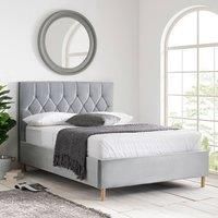 Modern and stylish the Loxley bed is upholstered in a beautiful fabric and is perfect for those who want to create a luxe look, adding a touch of class to the bedroom. The Loxley bed frame is upholstered in polyester with complementary light feet and is available in mustard, grey, green and blue. This frame has a sprung slatted base with natural bounce, adjusting to where pressure is most exerted to provide greater comfort. | Birlea Loxley Bed in Grey | Size: Small Double - Manufacturers part number: Birlea_5056206638269