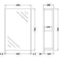 A great storage addition to any modern family bathroom. The gloss grey mist finish allows you to co-ordinate with a range of ceramics and additional storage units. This unit has a soft close door which limits the daily wear and tear and provides a quieter closing action. Features: Fascia Thickness: 18mm No of Shelves: 1 Hinge Type: 95 Degree Clip-On Soft Close Fixings included Construction type: Rigid Fascia Finish: MFC Painted Gloss Handle Type: Handless Specifications: Dimensions: H:715.0 x W:450.0 x ...