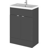 Hudson Reed Fusion Floor Standing Vanity Unit Ceramic Basin 600mm Gloss Grey