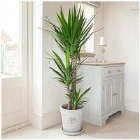 Yucca 3 stem 90/45/20cm in 24cm pot 1.3m tall A great way to bring the outside in, these bold, striking houseplants are bang on trend and make a real feature in your home with their sword-like, long green leaves sprouting from a sturdy double trunk.One of the few houseplants that thrive in full sun and partial shade, the Yucca is an ideal plant for a bright room or the conservatory - and a great plant for a Mediterranean feel on the patio during the summer.Grown for its foliage and shape, it really does...
