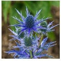 Eryngium planum 'Blue Hobbit' is a unique, perennial dwarf Sea Holly which produces dozens of unusual spikes of flowers that are a favourite for cutting, whether fresh or dried. Naturally compact, plants are ideal when situated at the front of a border in full sun and also perform beautifully in pots and containers, where that can be mixed in with other plants for a summer display to remember! The thimble-sized, metallic-blue flowers are surrounded by a collar of short spikes and are carried on short,... - Manufacturers part number: UTV33