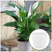 Spathiphyllum 'Peace Lily' with White Pot An absolute favourite, the Peace Lily has got to be one of the most reliable and versatile indoor plants that you can get. With its beautifully glossy, dark green leaves and large white flower spathes that last for weeks, it's instantly recognisable as the ultimate houseplant and an absolute must have decoration for your home. Blooming in spring, the flowers of 'Sweet Silver' are actually tiny, yellow bumps carried on a small floral spike and its actually t...