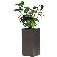 Contemporary stone composite tall cubic planter with a glossy silver-grey finish. Resistant to weather, frost, and UV damage. Features a drainage hole, raised feet for root health, and an inner lining for root protection and water retention. | Primrose Metallic Grey Polystone Tall Cubic Outdoor Garden Planter 60cm in Dark Grey