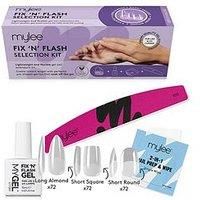 Mylee Fix N Flash Nail Extension Selection Kit Mylee's sellout product of 2022 is back helping you to create your dream nail extensions in a matter of minutes! Initially sold out in just 2 weeks in November 2022, we're back introducing the Fix 'N' Flash Kit! A real game-changer in at-home extensions, this kit will get you started with soft gel tips in 3 different shapes in 12 sizes and your application tools. CONTENTS - 216 tips split into 3 shapes (long almond, short square & short round) - Fix N F... - Manufacturers part number: VMZQT